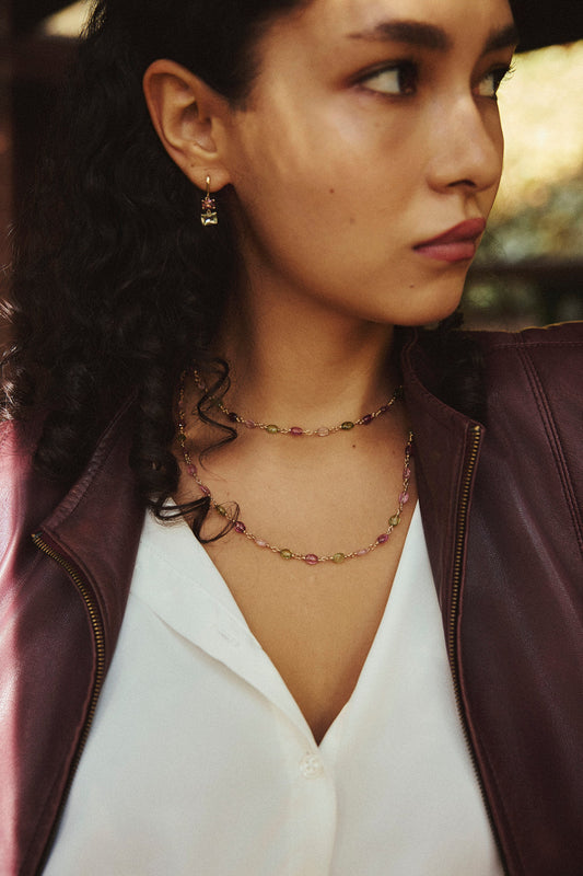 Pink Tourmaline and Yellow Sapphire Squares Necklace