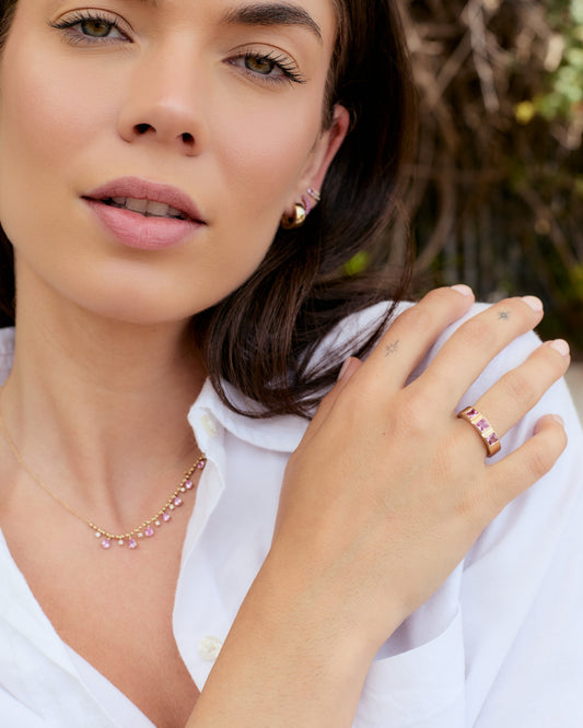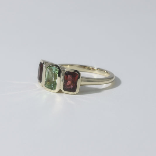 Yellow Sapphire and Pink Tourmaline Squares Ring