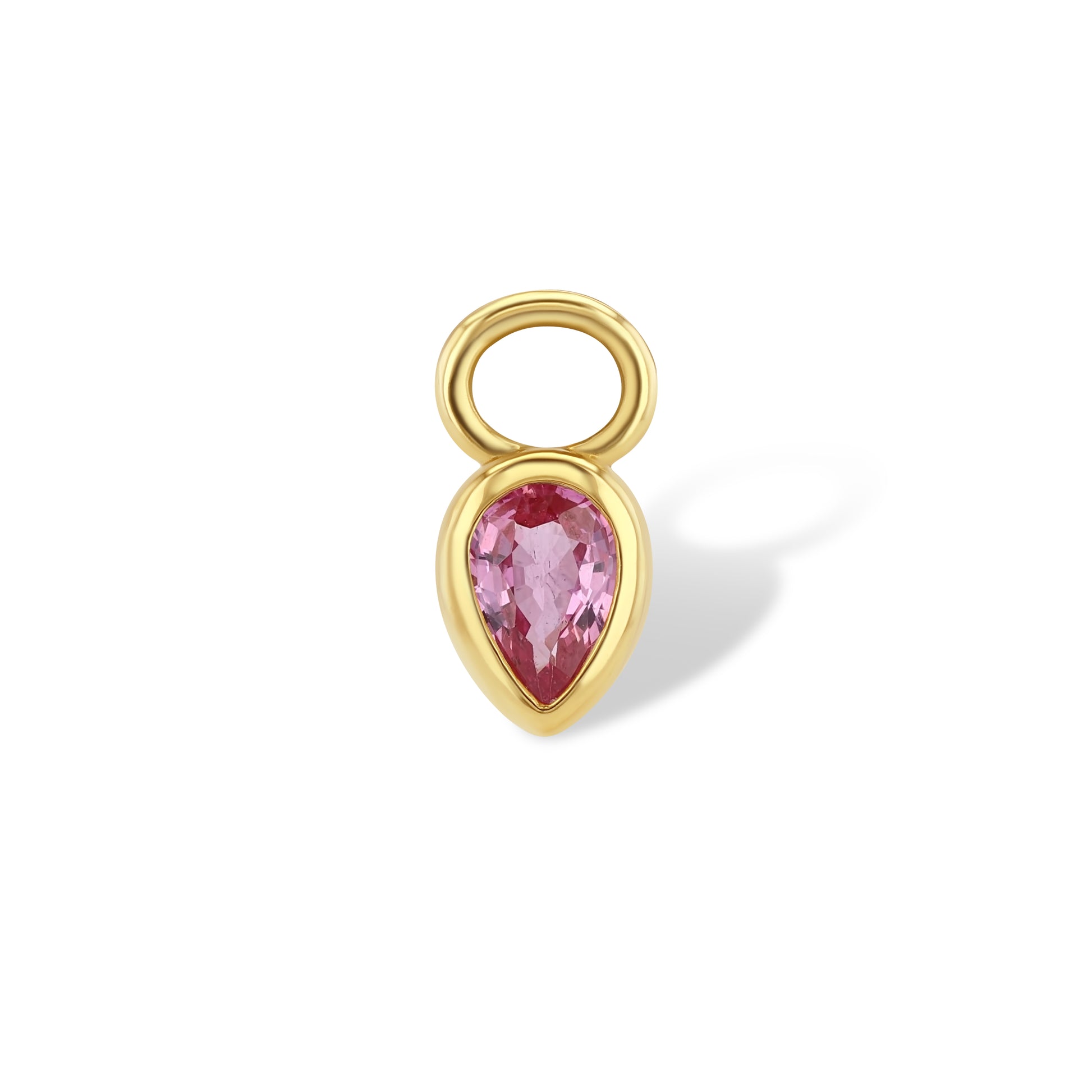 6x4 bezel-set, pink sapphire pear earring charm @o.5 ct. Pairs with our Curb Chain Hoop Earrings. Buy the single as priced here or 2 to make a pair.